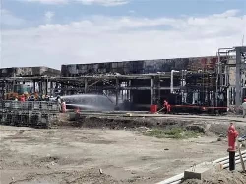 石河子合盛硅业20万吨有机硅厂硅石反应炉爆炸(现场人员反馈听到两次爆炸声音),12点25分,合盛周边企业天铝,天富北电及大全硅厂办公室行政人员开始撤离,生产人员部分留守,从石河子北十五路开始封闭进行交通管制,石河子11道、12道场站向天铝,天富集装箱倒短车辆全部停止作业。