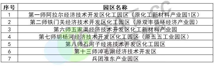 新疆生产建设兵团确定了第一批化工园区名单,共7家,化工园区数量较此前减少22家。