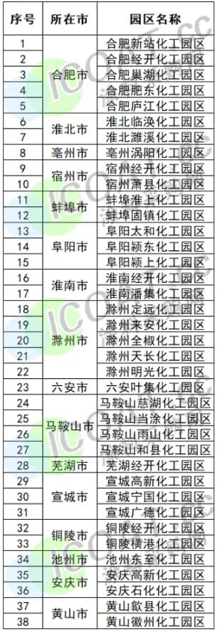 为贯彻落实《全国安全生产专项整治三年行动计划》,根据《安徽省“1+11+N”安全生产专项整治三年行动实施方案》要求,经委托第三方机构评审、省认定工作组联合审查,现将符合《安徽省化工园区认定办法》条件的安徽省38家化工园区(第一批)名单予以公示。化工园区数量较此前增加了28个。
