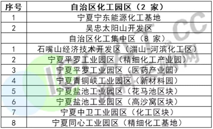 宁夏回族自治区工业和信息化厅委托第三方专业机构对全区开发区进行综合评估,研究并确定拟认定自治区化工园区(集中区)名单,拟认定化工园区2家,化工集中区8家。化工园区数量较此前减少4个。
