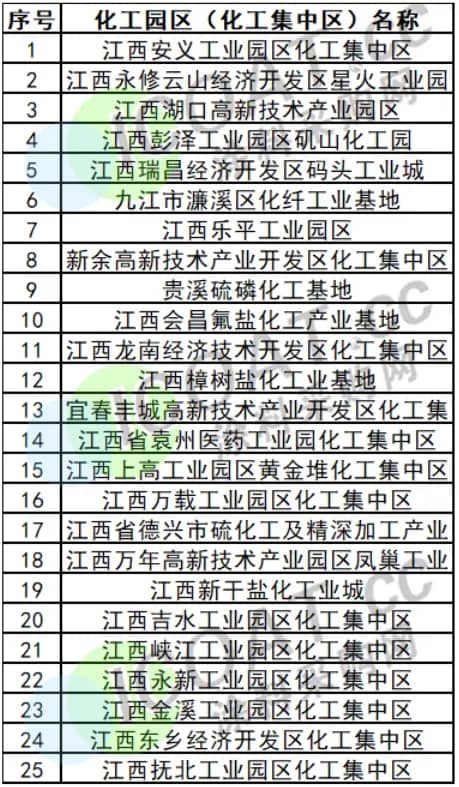 江西省工业和信息化厅、江西省发展改革委、江西省应急厅、江西省生态环境厅、江西省自然资源厅联合发布了化工园区名单(第一批)公示名单,共25家。另外,在2020年10月,江西省政府专门批准了成立了九江石化产业园。至此,江西一共有26家化工园区通过认定。化工园区数量较此前增加15个。