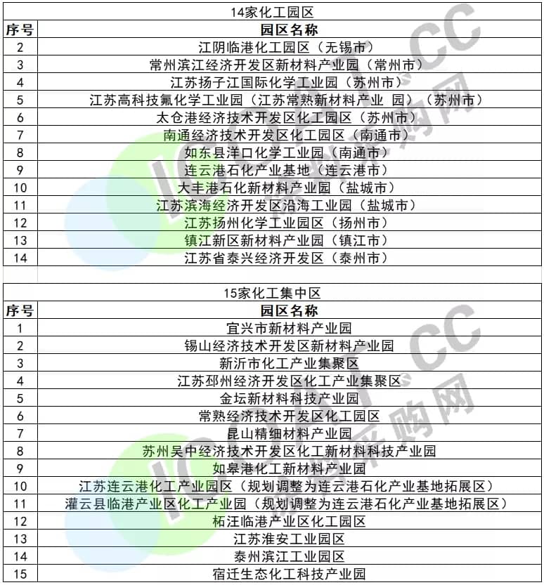 江苏省宣布全省定位化工园区、化工集中区名单。南京江北新材料科技园等14家园区被认定为化工园区,宜兴市新材料产业园等15家园区被认定为化工集中区。化工园区数量较此前减少21个。