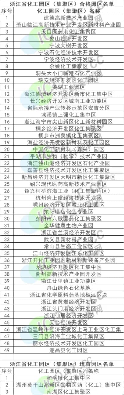 浙江省经信厅发布“关于浙江省化工园区(集聚区)评价认定结果”的公示。通过前期各市初审、专家评审及现场核查等环节,将拟通过认定为合格园区和培育园区的名单进行公示,共49家合格园区和3家培育园区。化工园区数量较此前增加37个。