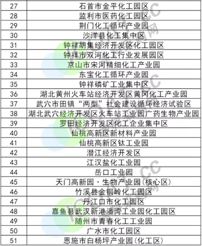 湖北省发改委官网公布了全省化工园区确认名单,武汉化学工业区等51家园区在列。化工园区数量较此前增加25个。