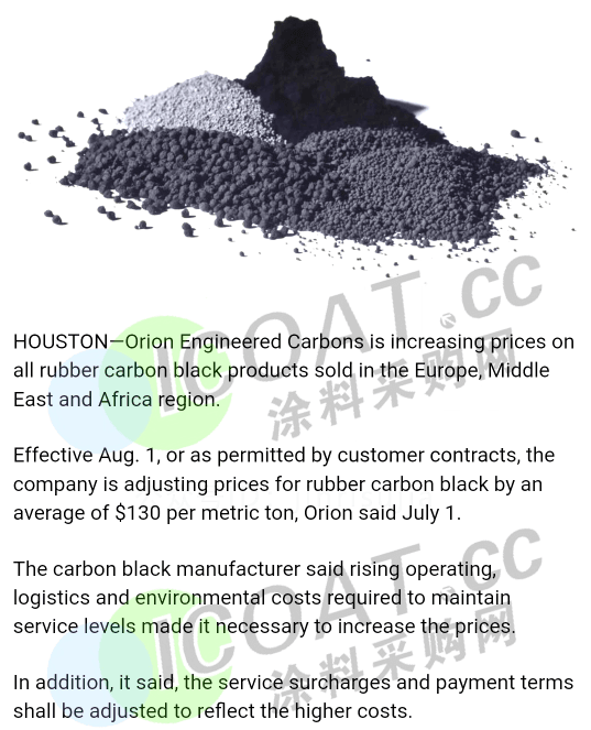 德国欧励隆ORION(原赢创德固赛):从8月1日起公司橡胶炭黑的价格上调130美元/吨(约合人民币841元/吨)。