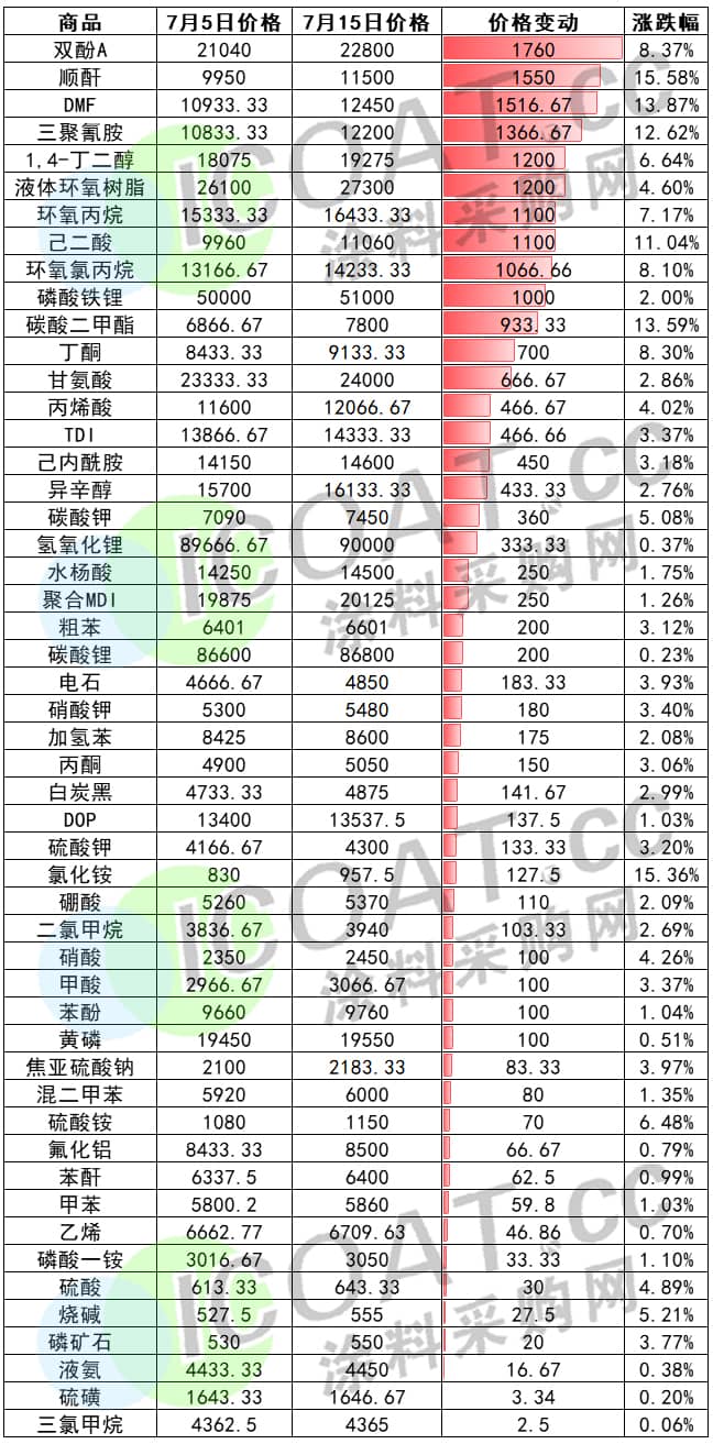 对于A股市场走强,业内人士表示,央行降准的消息是主要驱动力。在股市疯狂飙涨的同时,化工行业也受到利好拉动。市场活性增加,企业看好后市行情,因此,化工龙头企业纷纷拉开架势调涨产品价格,甚至对于8月的涨价情况也已经安排妥当。