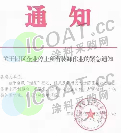 江苏江阴临港化工园区管理中心紧急通知,园区企业即刻起停止所有船舶、车辆装卸货作业,直至台风影响消除。