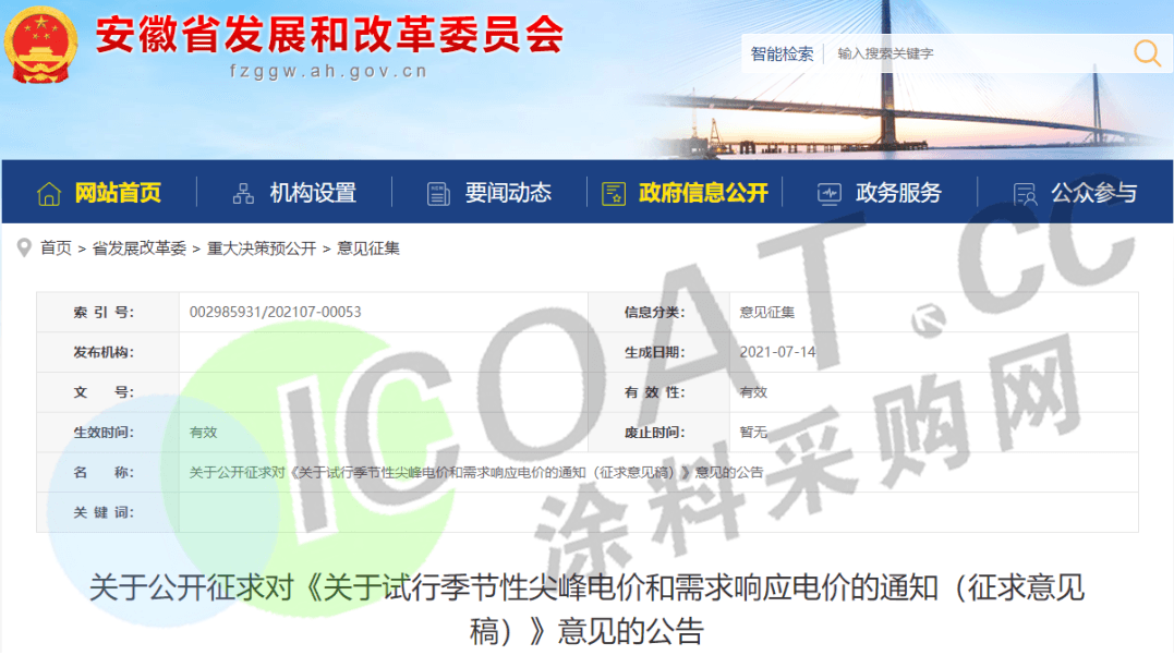 安徽省发改委日前发布《关于试行季节性尖峰电价和需求响应电价的通知(征求意见稿)》。其中提到:试行季节性尖峰电价:冬季和夏季期间,在日最高气温≥36℃或日最低气温≤-5℃时,对全省工商业电力用户试行尖峰电价政策,即用电价格在当日高峰时段电价基础上每千瓦时上浮0.072元。
