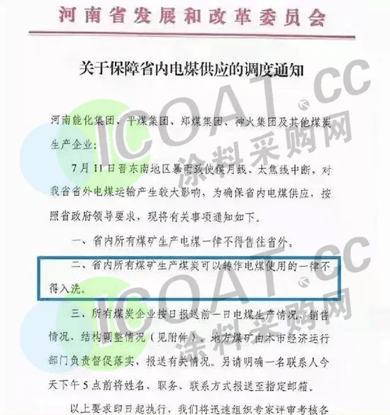 河南发改委近期发布《关于保障省内电煤供应的调度通知》,其中提到:为了确保省内电煤供应,要求省内所有煤矿生产电煤一律不得售往省外,省内所有煤矿生产煤炭可以转做电煤使用的一律不得入洗。