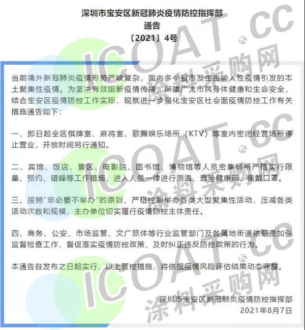 深圳市宝安区:即日起宝安区KTV、棋牌室等室内密闭经营场所停止营业。