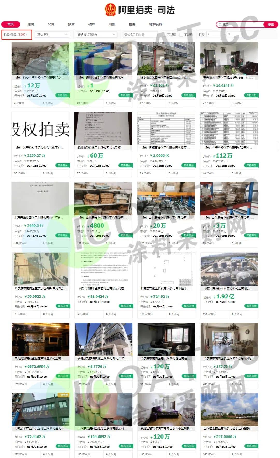 行业中的龙头企业尚且如此,中小型企业的处境自不必说。网络司法拍卖平台显示,5000多家化工企业因破产等原因对企业的设备、厂房、产品、债权等进行拍卖,起拍价格从几千元到几亿元不等。遗憾的是,不少场次以流拍告终,难以预测他们的下一场拍卖能否顺利完成。