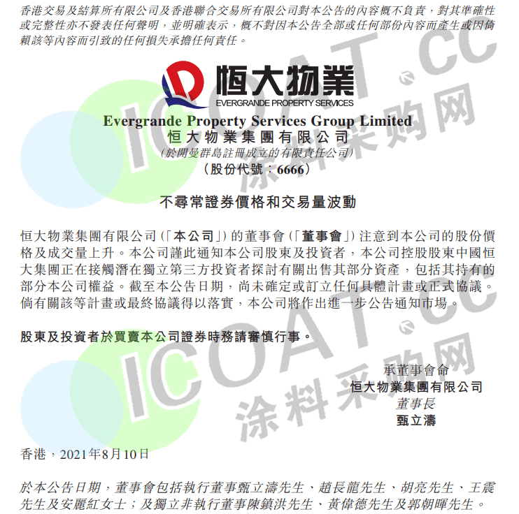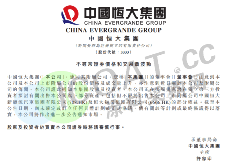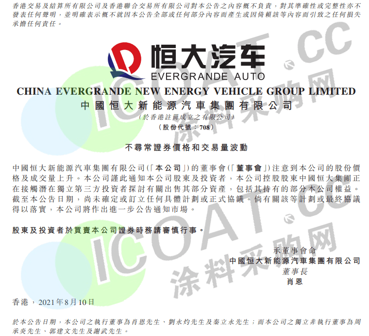 与此同时,恒大汽车和恒大物业也对此进行了公告,并表示,截至公告日期,尚未确定或订立任何具体计划或正式协议。