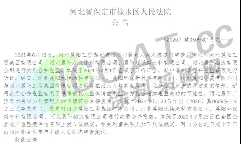 而随着晨阳水漆的破产重整持续进行,其公司员工多数继续转战其他涂料企业。知情人士表示,晨阳水漆的员工大多进入同行业知名企业,包括石家庄市油漆厂、七维水漆等涂料企业,另有部分员工进入华中南、华东、华北等多地区的涂料企业,国内多个地区的龙头企业多有晨阳员工入职。