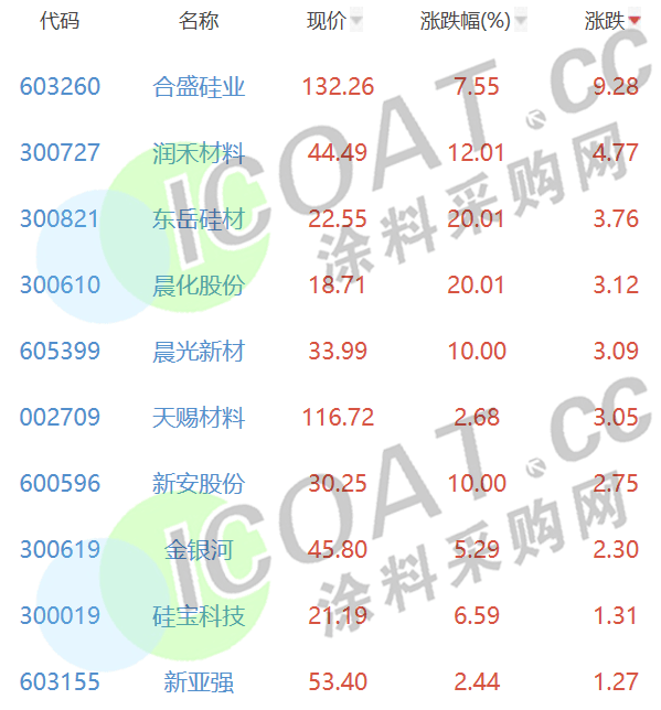 与此同时,有机硅板块全线飘红,整体上涨6.44%,晨化股份、东岳硅材20%涨停,多只个股涨超10%,这也反映出了当前有机硅行业的火爆态势。业内人士表示,有机硅直线上涨并不是个例,近期与光伏、新能源汽车等产业链相关的化工品都在疯狂上涨,秘密就在于国内“碳中和”政策的加速驱动。