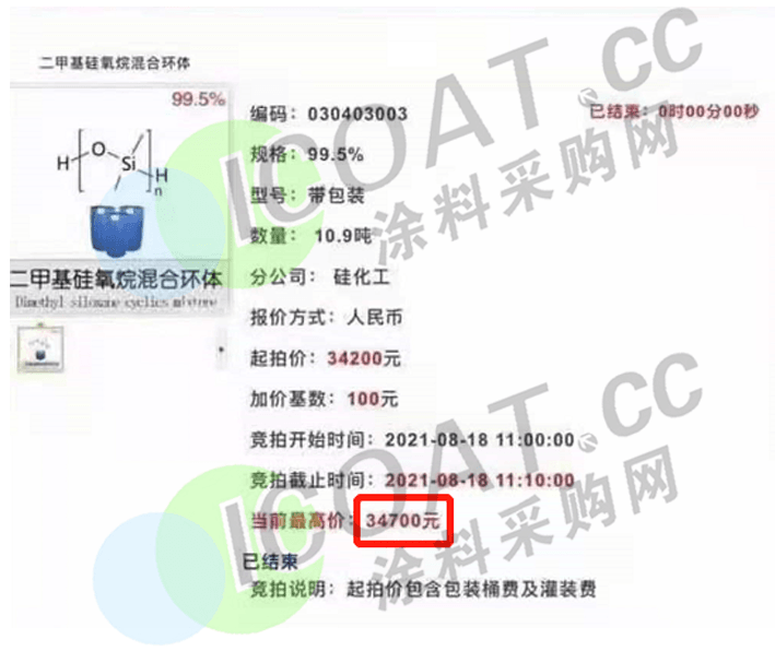 8月18日,某有机硅单体厂开启花式竞拍,最终该10.9吨DMC以34700元/吨成交,目前价格与2018年有机硅史上最高价只有一步之遥,涨破记录指日可待。