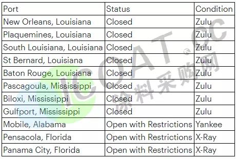 新奥尔良、普拉克明斯、南路易斯安那州和圣伯纳德在内的港口均在周六关闭货限制出货。