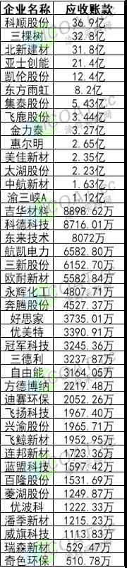 在涂料行业上市公司应收账款排行榜上,14家涂料企业应收账款超过1亿元,25家涂料企业应收账款超过1000万元,科顺股份(36.9亿元)、三棵树(32.8亿元)、北新建材(31.8亿元)、亚士创能(21.4亿元)、凯伦股份(12.4亿元)位居前五强的位置,这与净利润榜首的企业吻合较多。
