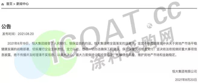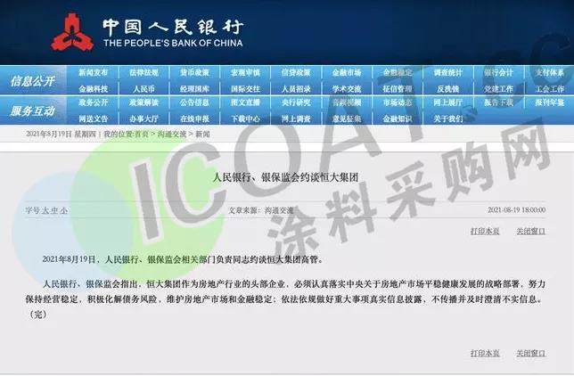 为尽快自救,恒大集团频频抛售资产,恒大物业、恒大冰泉、恒大汽车等资产均被“摆上货架”。而后,央行网站公告称,人民银行、银保监会相关部门负责同志约谈恒大集团高管。而恒大也立刻做出了“事情刻不容缓”的回应,以最大决心、最大力度保持公司经营稳定,化解债务风险,维护房地产市场和金融稳定。