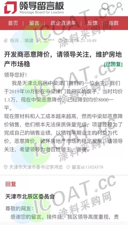 目前部分非热点三四线城市在强调控之下成交持续低迷,而房企在“三道红线”等政策的约束下,资金压力逐渐显现。多地网友反映,房企为了回笼资金,在多座城市采取以价换量的方式恶意降价,有业主还未交房就已经一年损失30万。