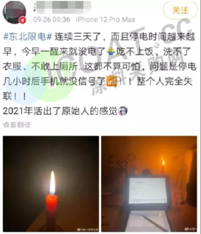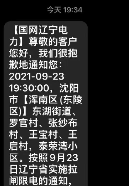 部分人表示,停电已经持续了3天,并且时间越来越早。以往停电都会提前通知,什么区域什么时间停电,以及何时恢复供电,但东北的这一波停电,似乎有些突发。沈阳一些区域,23号下午4点45分停电,很多人就没有预警。还有人在晚上7点34分收到了7点30分要停电的通知,至于什么时候恢复却再无下文。