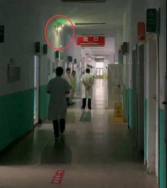 网友反映,部分医院也遭遇停电,开启了应急照明。