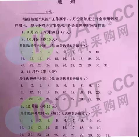 在“开二停二”的基础上,江苏泰州兴化、南通等地发布通知,所有工业企业必须停产停电到位,预计停电期限到10月8日24时。