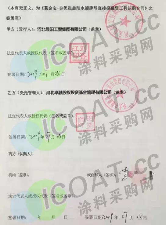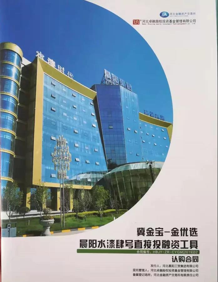 据相关人士介绍,晨阳集团的民间融资是通过河北卓融股权投资基金管理有限公司完成的,根据认购合同显示:发行人为河北晨阳工贸集团有限公司,受托管理人为河北卓融股权投资基金管理有限公司,备案登记场所为河北金融资产交易所有限责任公司。