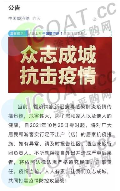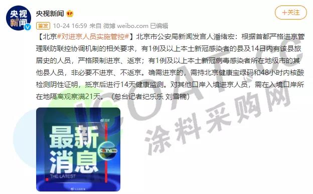 国务院国务院联防联控机制召开的新闻发布会上提到,本起疫情的病毒为德尔塔变异株,部分病例的呼吸道样本病毒核酸载量高,提示病毒排毒量大、传播力强,在暴露人群中引起续发传播的风险高。当前,国外疫情持续蔓延,季节因素叠加,容易引发疫情传播扩散。疫情进一步扩散风险仍在加大,涂料采购网提醒大家,非必要不出省,随时做好安全防护。
