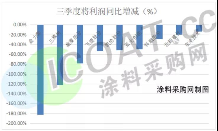 除此之外,涂料采购网注意到,集泰股份、飞鹿股份等7家涂料行业上市公司净利润较去年同比有所下降。