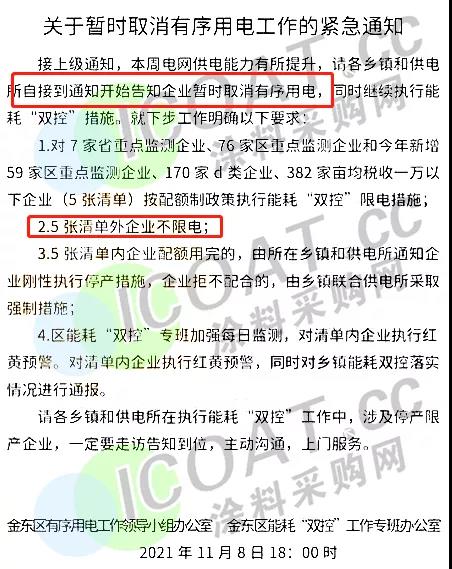 浙江金华金东区:发布取消有序用电工作的紧急通知,5张清单外企业不限电。