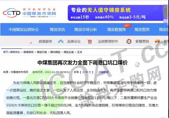 9日,中煤集团再次全面下调港口和坑口动力煤销售价格,一是北方港口5500大卡煤炭平仓销售价格全部在1100元/吨以下,二是所属晋陕蒙生产企业5500大卡煤炭坑口价格一律不超过900元/吨。截至目前,内蒙古伊泰集团、蒙泰集团、汇能集团和兴隆集团、国家能源集团、中煤集团等十几家企业相继主动下调煤价。