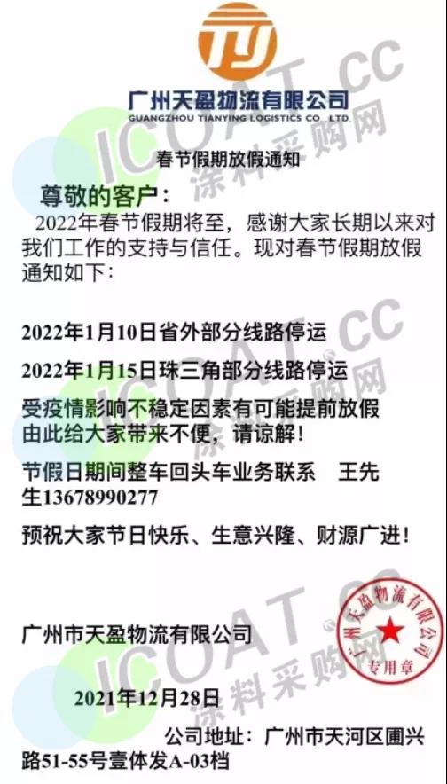 与此同时,众多涂料、工业企业也开始做年末的收尾工作,即将提前开启春节假期。