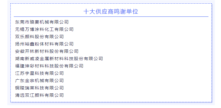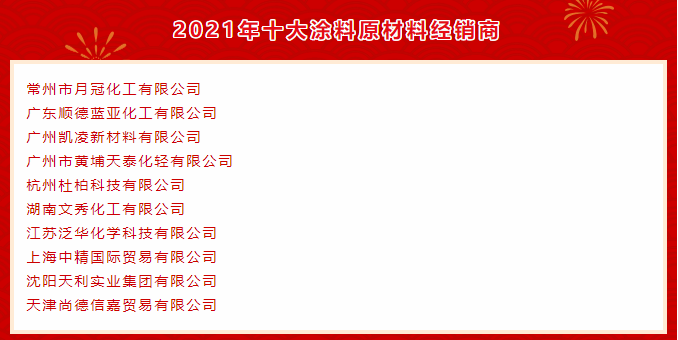 作为涂料行业最大的新媒体服务平台,涂料采购网于2021年11月中旬发起“2021年度十大涂料供应商”线上评选活动,经过紧张而又激烈的线上竞争以及1年的实地调研,最终评选出了“2021年度十大涂料供应商”,为涂料企业在2022年的原材料采购方面提供了切实可行的参考。