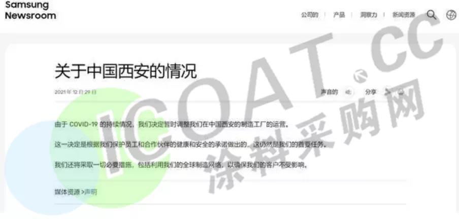 三星宣布,因疫情原因,将暂时调整中国西安工厂的运营,尽可能保护员工的安全。未来将采取一切必要措施,包括利用自己的全球制造网络,来确保客户不受本次调整的影响。