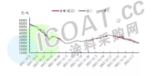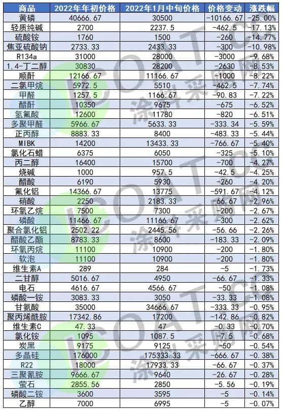 据涂料采购网不完全统计,2022年开年以来已有几十种化工品价格下跌,如今距离春节假期不到半月,下游刚需采购不多,物流也在陆续停运,叠加疫情多点爆发带来的下游房地产、基建项目、汽车制造等行业停工面逐渐加大,市场逐步趋冷,导致化工品需求锐减。部分化工厂为防止春节期间累库,故而下调了出厂报价,但仍未出现期待中的下游抄底补货的情况。