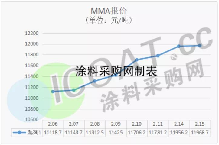 MMA七连涨,报价上涨475元/吨。