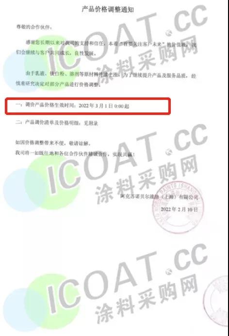 阿克苏诺贝尔漆油(上海)有限公司:3月1日0:00起,对部分产品进行价格调整。