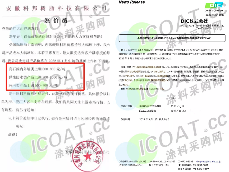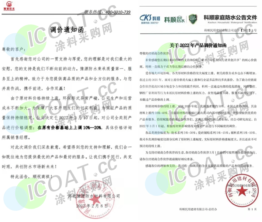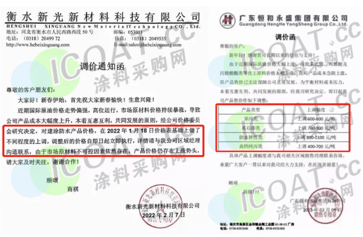 涨价函满天飞!乳液、树脂、涂料等多个类别纷纷调涨!