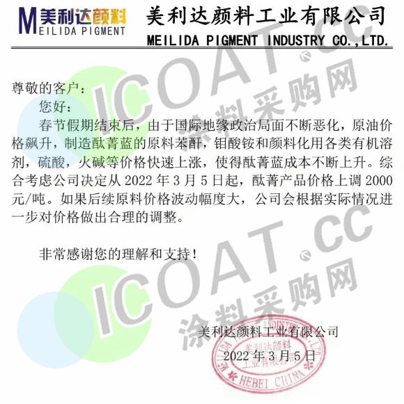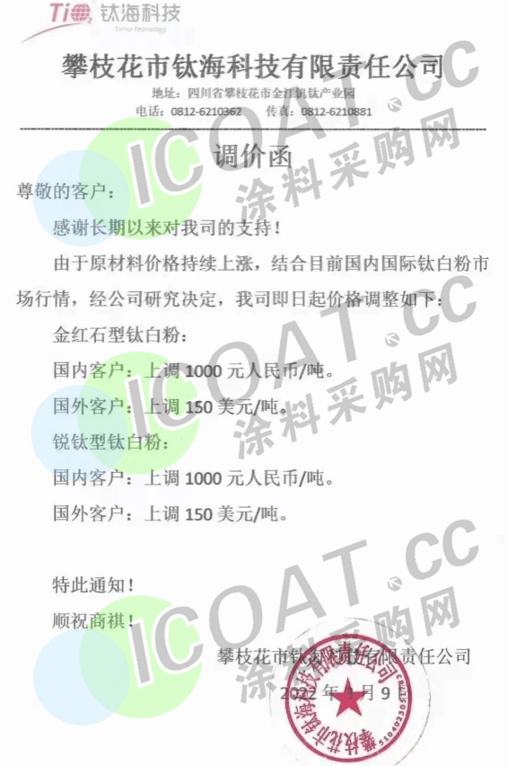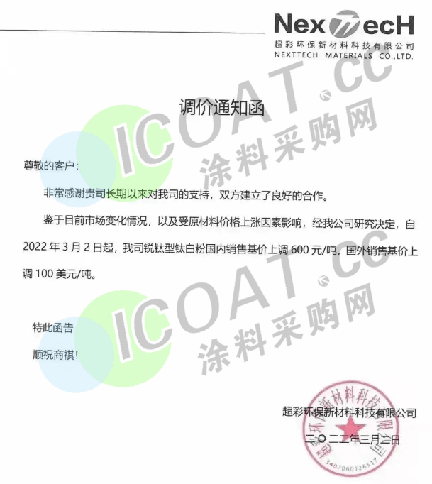 这与此前化工人预测的,海外巨头拉动国内钛白粉企业涨价的说法不谋而合。据涂料采购网了解,近期不少化工企业发函宣布产品价格上涨,涵盖颜料、胶类、聚酯树脂、消光粉等多种产品,可谓是种类繁多。