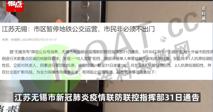 同样面临物流危机的,还有化工大省江苏。3月30日、31日,江苏无锡在重点人群排查中发现多例核酸检测阳性,根据目前的形势,无锡划定了封控区和管控区。无锡市暂停所有运营车辆,公交车,网约车,货运车等等。同时提倡市民非必要不出门,非必要不离锡。如果确实有突发情况的,要提前报备,并提供24小时核酸阴性证明。