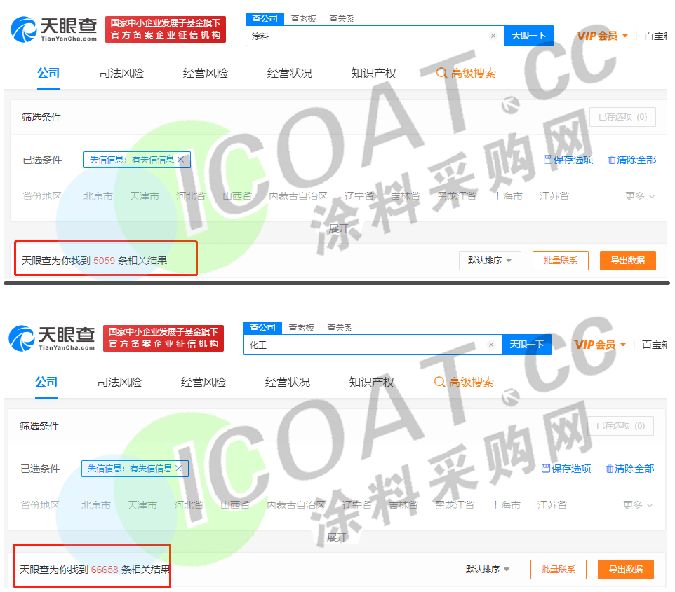 在目前风雨飘摇的化工市场中,无论是企业被列为失信被执行人,还是高管严重违法失信,都并不鲜见。据涂料采购网了解,截至目前,涂料行业有失信信息的企业超过5000家,化工行业有失信信息的企业超过66000家,也就是说,7万余家涂料、化工产业链上的企业因多种原因违法失信,被列入黑名单或被列为失信被执行人。
