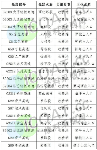 G2003太原绕城高速南环段:滨河收费站、古城营收费站、小店收费站出入口封闭。