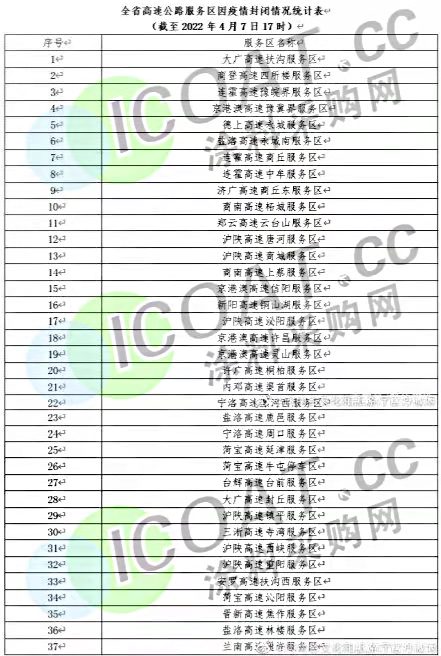 大广高速扶沟服务区、连霍高速商丘服务区、京港澳高速信阳服务区等河南37个高速服务区封闭,禁止车辆驶入。