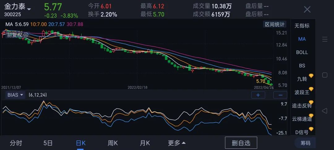 同德化工股价下跌1.53元,跌幅20.59%,市值蒸发6.5亿元;
