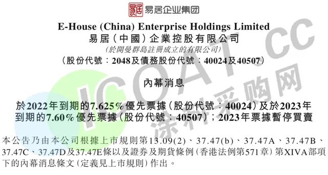 近日,易居(中国)企业控股有限公司(02048.HK)发布美元债违约公告,易居一笔3亿美元的优先票据于当天到期,但易居未能如期偿还该笔票据,已构成实质性违约。此外,这还触发了2023年票据的交叉违约。