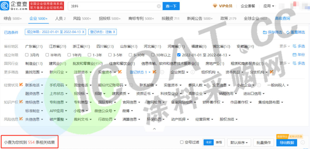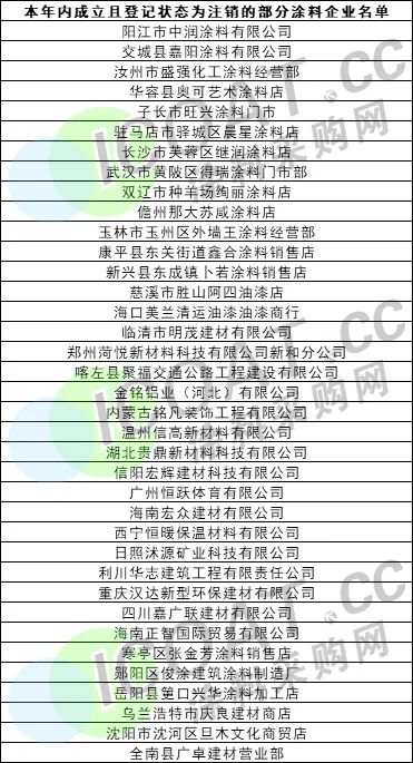 另外,处于简易注销和注销备案处境的涂料企业也不在少数,值得注意的是,本年内成立且目前的经营状态已经处于注销阶段的超过500家。