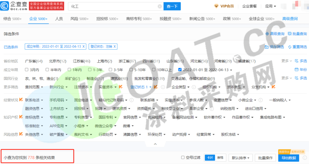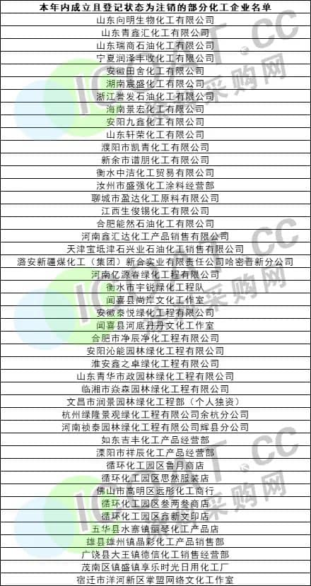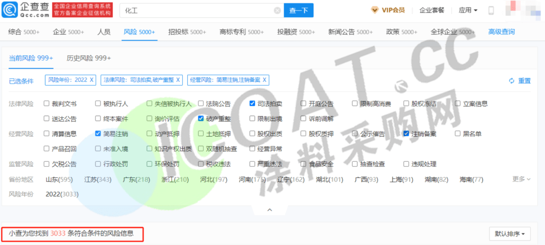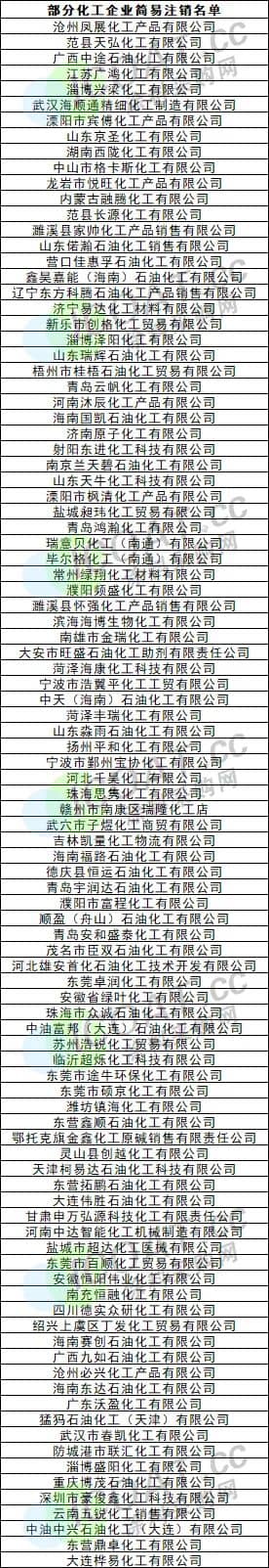 而在化工行业,倒闭、破产或者目前情况焦灼的则更多一些。据涂料采购网不完全统计,仅3个多月的时间里,化工行业(含化工品制造、销售等企业名称中包含“化工”关键词的企业)超过3000家,覆盖的区域包括山东、浙江、河南、河北、辽宁、上海等,可谓是从东到西,从南到北均被涉及。