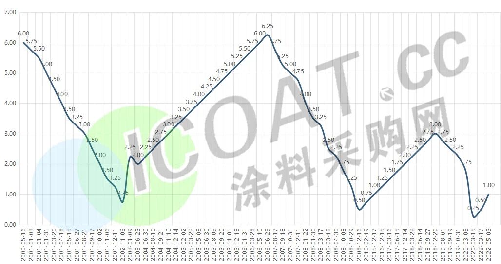 2000年5月16日以来美联储基准利率(贴现率上限)