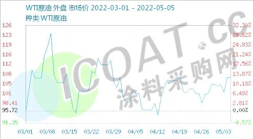 原油市场方面也出现较为明显的涨势,欧盟委员会周三提交了第六轮对俄罗斯制裁措施提案,其中包括在今年年底前全面禁止进口俄石油产品。德国政府同一天表示,德国对俄罗斯的能源依赖度已明显下降,对俄罗斯的石油依赖度已降至15%,这些消息推动国际油价大幅上涨。