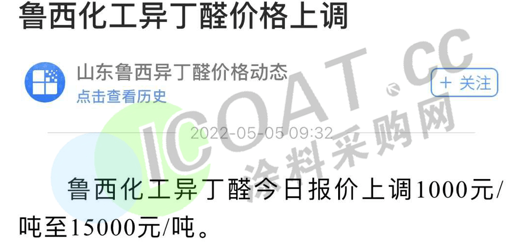 鲁西化工异丁醛价格上调1000元/吨至15000元/吨。